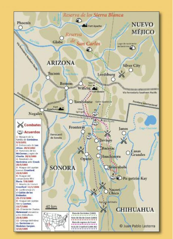 Este corto pero fascinante relato, escrito por uno de sus protagonistas directos, cuenta la historia de las campañas emprendidas por el ejército de los Estados Unidos entre 1883 y 1886 para atrapar a los chiricahuas huidos de la reserva apache de San Carlos. Refugiados en la inhóspita Sierra Madre mexicana, partían de allí para realizar sangrientas incursiones por tierras de Sonora, Chihuahua, Nuevo Méjico y Arizona. En estas páginas se unen los destinos de tres grandes personajes de la historia del Oeste americano: el indómito Gerónimo, el experto y comprensivo general Crook y el capitán del 3º de Caballería John Gregory Bourke, cuyo inmenso legado literario ha sido instrumental durante más de un siglo para conocer los diversos aspectos etnológicos de los indios norteamericanos y ha inspirado a cineastas como John Ford, a pintores como Frederick Remington o Howard Terpning y a escritores tan dispares como Edgar Rice Burroughs o Cormac McCarthy.